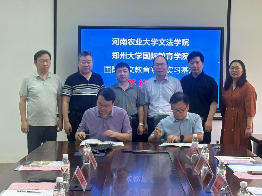 院长王晓勇、副院长李伟、汉语言文学系主任刘华、副主任吴亮、教师代表付梅、郑亚豪,以及郑州大学国际教育学院院长麻哲、副院长赵江涛、教授委员会主任韩晓明、教师代表冯晓瑞出席此次签约揭牌仪式。