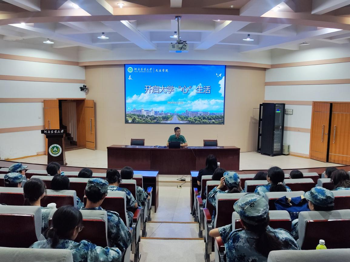 在文化路校区300人报告厅举办新生心理健康教育报告会,特邀马克思主义学院教师赵蕊做主讲嘉宾。会议由王鹏举主持,24级全体新生参加。