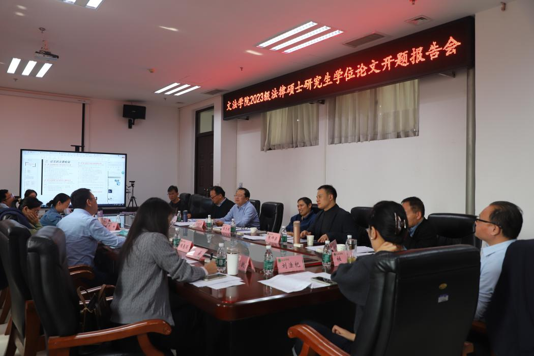 副院长杨红朝,河南农业大学政法办副主任张帅梁,法律系副主任赵菊敏以及法律系研究生导师组成。15名硕士研究生进行论文开题汇报。