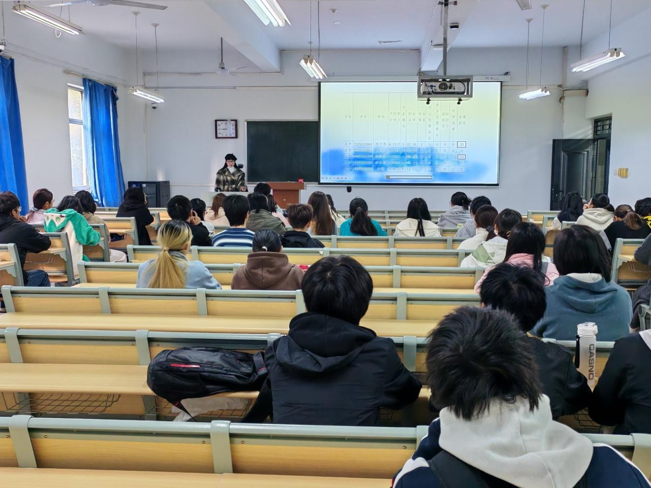 在桃李园学生公寓分专业举行了推免生事迹分享报告会,特别邀请2025届法学专业雷娇、行政管理专业贾锦涵、社会工作专业寇洋、汉语国际教育专业万芊芊四名优秀毕业生进行分享,2024级全体本科生参加。