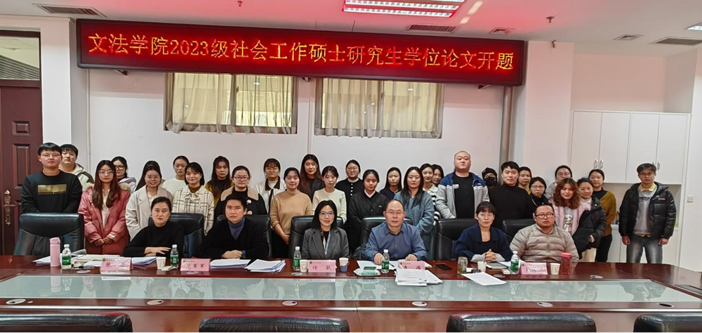 于繁塔楼A310举行了2023级社会工作硕士研究生开题答辩会。华中科技大学任敏教授担任答辩主席,副院长李伟主持,社会学系8位硕士生导师组成答辩委员会,20名2023级社会工作硕士生共同参与。