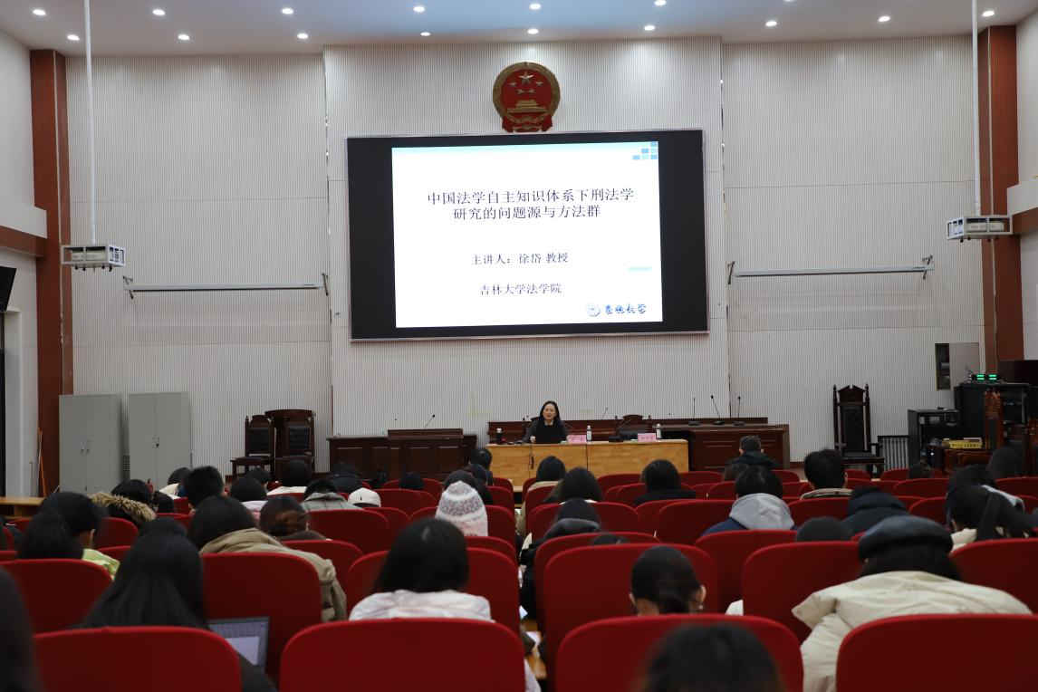 邀请著名刑法专家、吉林大学法学院徐岱教授于繁塔楼模拟法庭开展了一场主题为《中国法学自主知识体系的构建》的学术讲座。本次讲座由黄色网站
