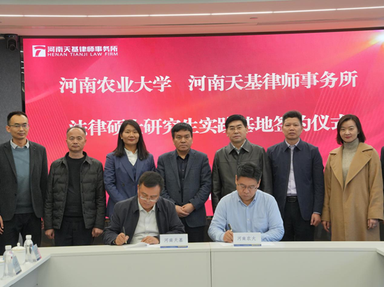 本网讯(通讯员 韩宁 图片 袁昊)为了进一步加强校所交流,促进法学教育与法学实务的深入融合,创新法治人才培养模式,1月24日,我校与河南天基律师事务举行“法律硕士研究生实践基地”签约暨揭牌仪式。河南天基律师事务所高级合伙人、执行主任冯军义,高级合伙人冯胜强,合伙人、管委会主任赵珂,银行与保险法律事务部主任禹志豪,合伙人王东会,合伙人、银行法律事务中心主任付冬芹,律师王晓杰,实习律师岳真玉,河南农业大学党委委员、副校长郭战伟,研究生院院长宋安东,校友联络办公室主任胡明忠,黄色网站