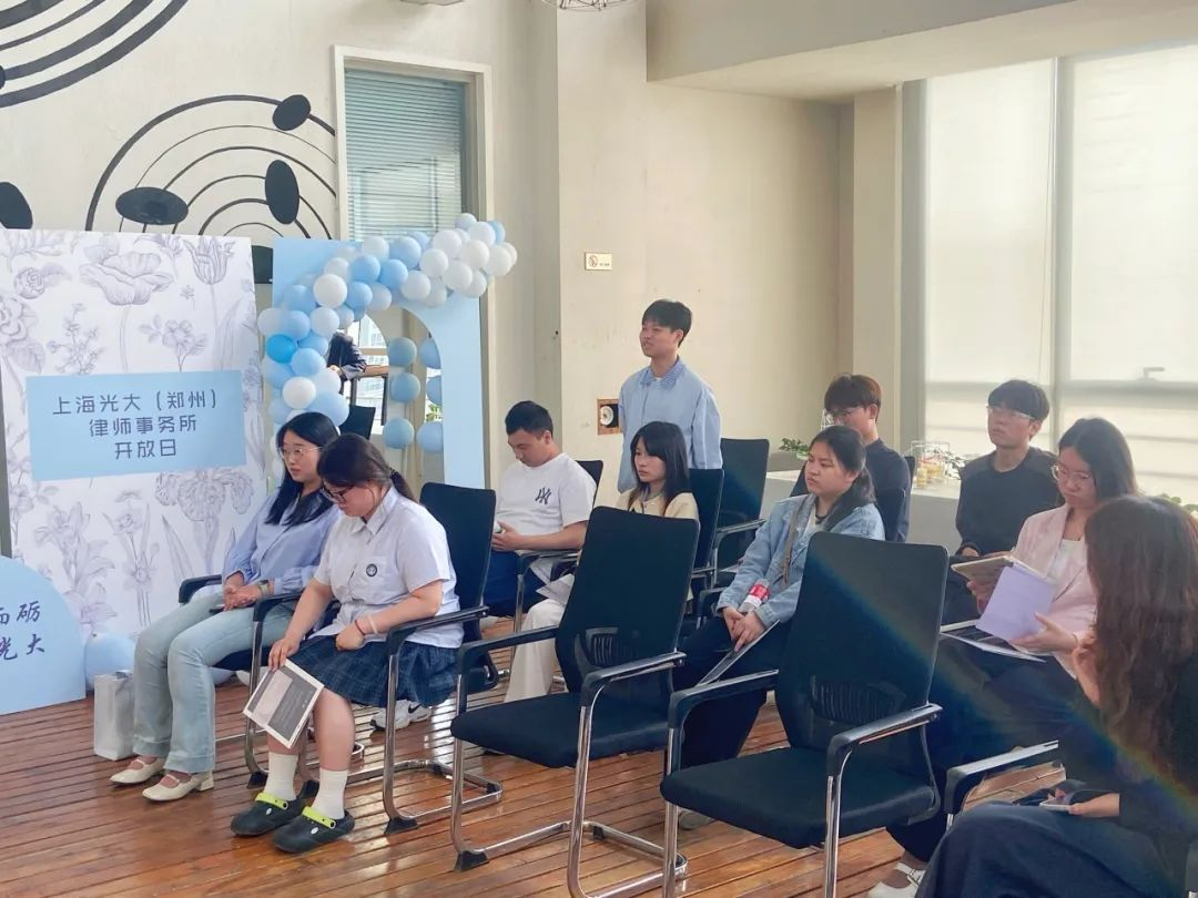 活动在主任助理、实习律师王丽君的主持中拉开序幕。品宣部主任王丹向到访者详细介绍了律所发展历程、黄色网站、业务领域等,引领到访学生参观律所,结合客户墙、荣誉墙、东西方法学家文化墙着重讲述光大律所服务理念和价值观。参观结束后,律所特别准备了精致的茶歇环节,同学们与律师们围坐畅谈。从探讨法律实务到分享执业经验,轻松的氛围拉近了彼此距离,也让“律所温度”悄然围绕到访学生。中共上海光大(郑州律师事务所)党支部副书记、建工部主任师树源向大家介绍光大郑州所建工团队,分享自己在上市公司的法务经历和律师执业经验。鼓励参观学生,加强自身法律知识学习,同时积极投身社会法律实践,以便学业结束后更好对接工作需求。在互动环节,到访学生积极提问,光大律所合伙人代表李琦主任从实习律师培养计划、如何面对工作中挫折和消极情绪等大家关心的问题耐心地给予解答并提出建议。