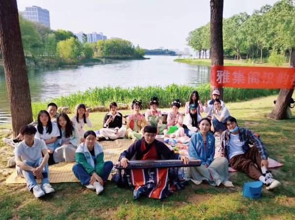 4月22日,雅集阁汉韵社于龙子湖公园举办春日雅集活动。活动伊始,社团成员身着汉服以“迎春礼”拉开活动序幕,社团成员携古琴,演奏《杏花天》,琴声泠泠,歌声朗朗,辅以春光美景,令人恍若置身文人雅士的曲水流觞之会。而后,社团成员进行“诗词飞花,共赋春日诗情”飞花令环节,以“花”为关键词,从“春花秋月何时了”到“自在飞花轻似梦”,赏诗中春,观词中花,现场诗意盎然。草木蔓发,春山可望。此次雅集不仅是一场衣冠与风物的邂逅,更是一次传统与当代的对话。雅集阁汉韵社愿作星火,以汉服为舟,载同袍穿越千年时光,让传统文化在春风中生生不息。