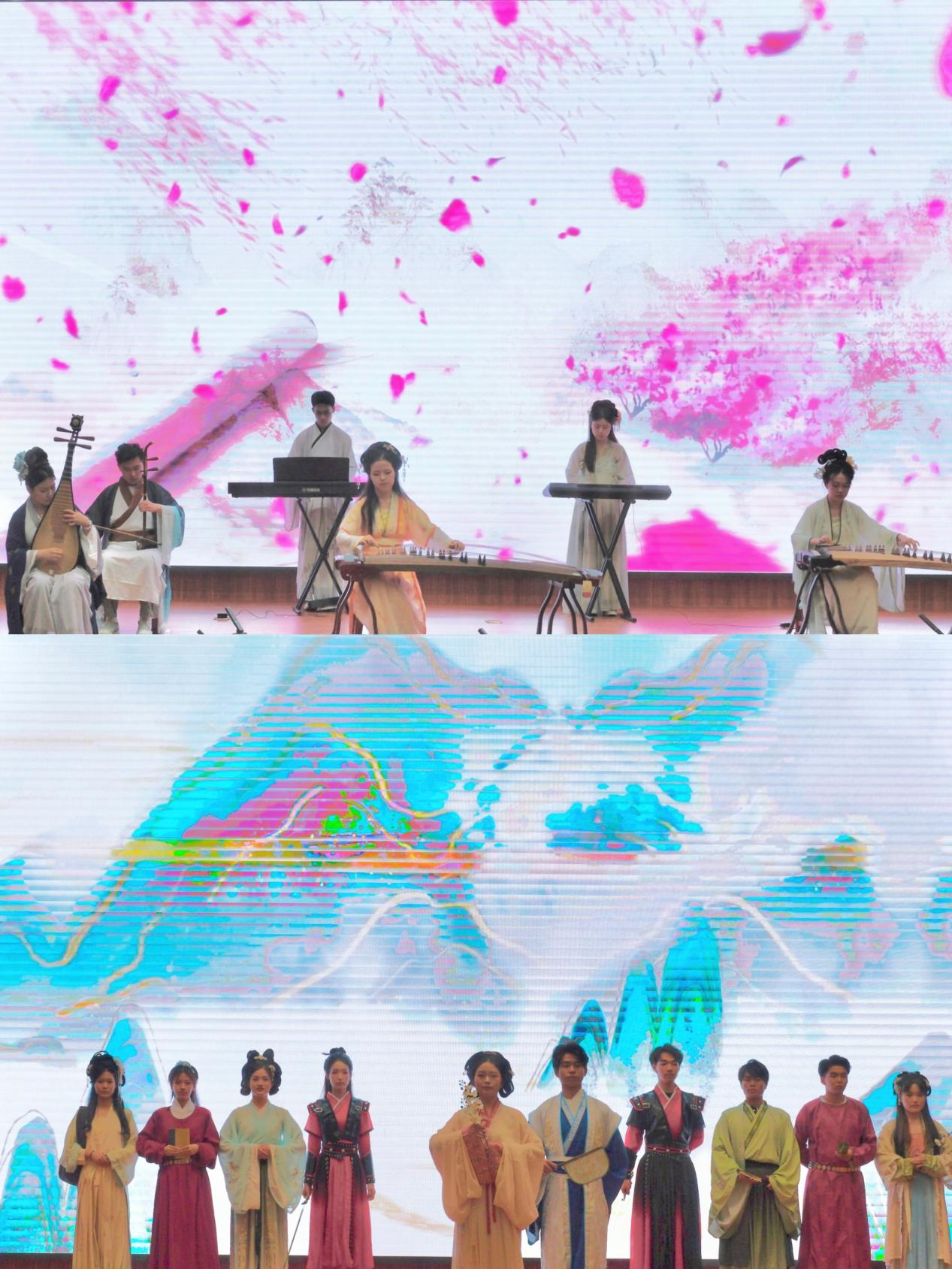 比赛期间,穿插了古琴器乐表演《美丽的神话》和汉服走秀表演《古韵华裳》。古琴演奏与汉服展示相辅相成,共同为现场营造出浓厚的文化氛围。