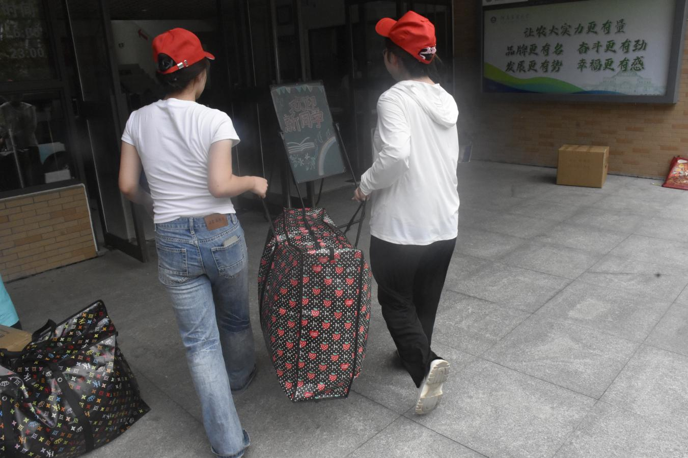 辅导员帮助学生搬运行李
