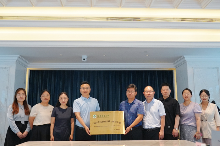 会谈结束后,双方代表共同签署国际中文教育硕士实习基地建设协议,并为“国际中文教育专业实习实践基地”揭牌。