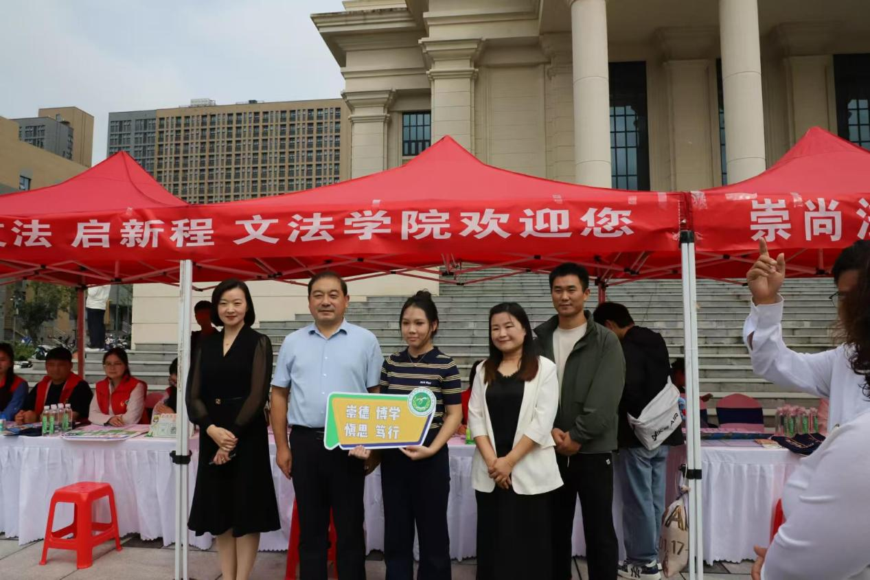 为切实解决新生顾虑,团委办公室为学生们扫描通知书;助贷部在大本营旁开通“绿色通道”,工作人员耐心解读助学贷款、助学金政策,用细致服务为家庭经济困难新生撑起“保护伞”;同时,学长学姐们以“崇尚法治,远离邪教”为主题,分发法制宣传手册,向新生普及法律知识与反邪教常识,既传递“法”的严谨,也融入“文”的生动,让宣传教育更易入心。