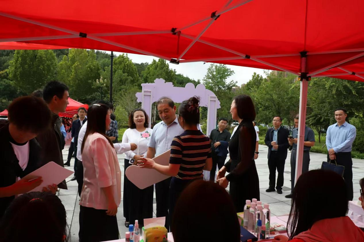 院党委副书记朱瑞萍和李伟院长与新生家长交谈