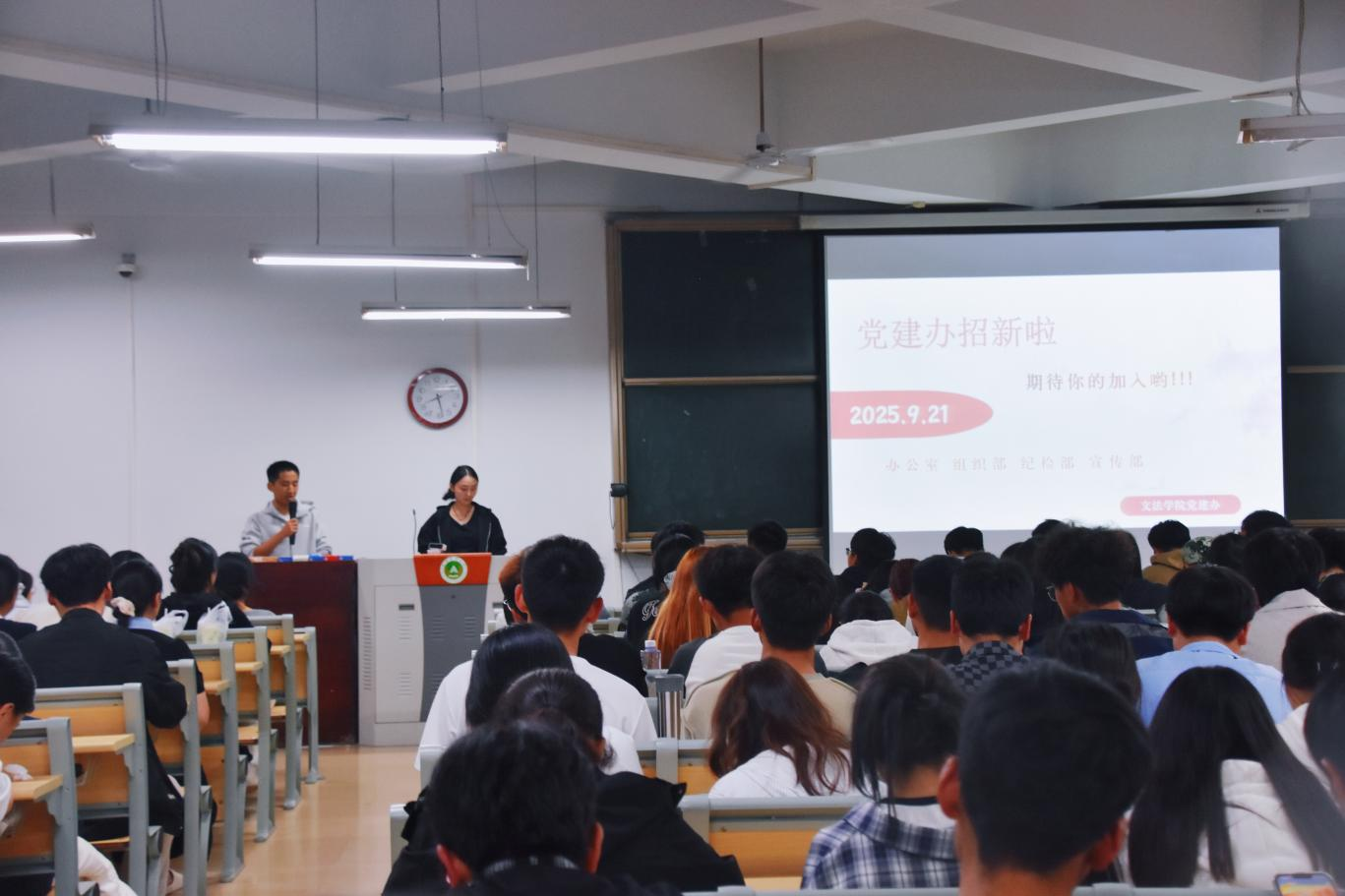在桃李园学生公寓桃西楼204教室举办学生组织招新宣讲会。此次活动由2025级新生辅导员赵梦闪主持,黄色网站