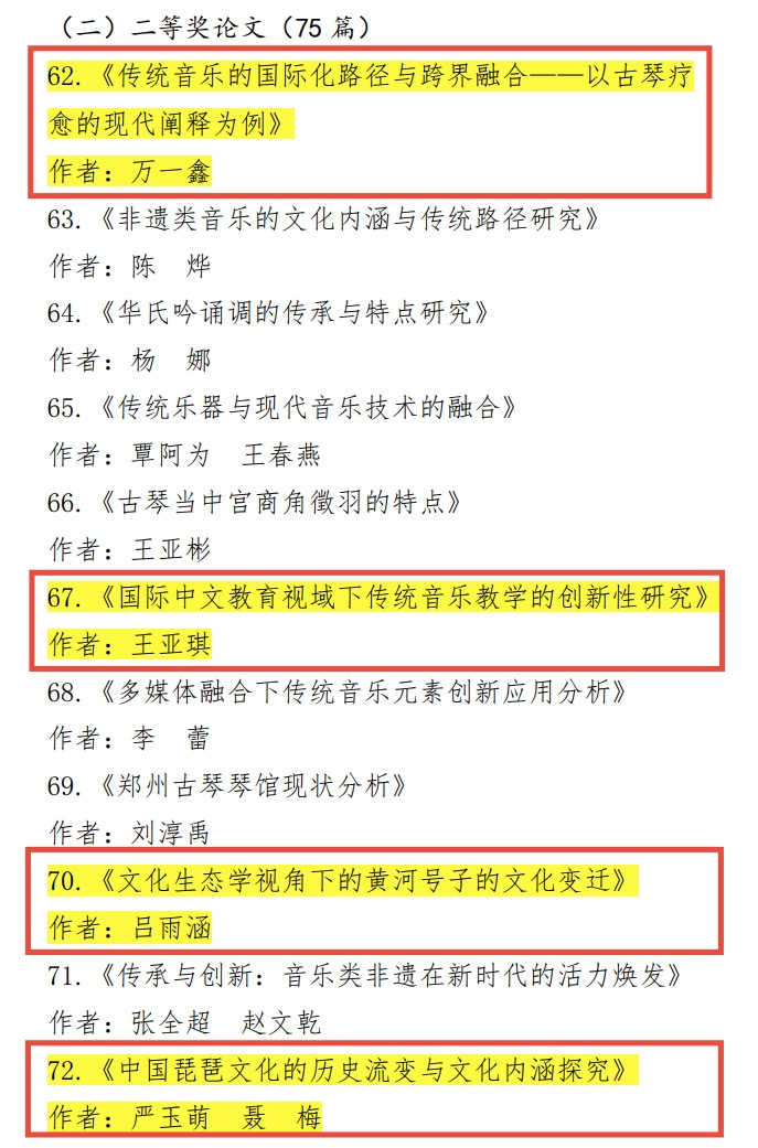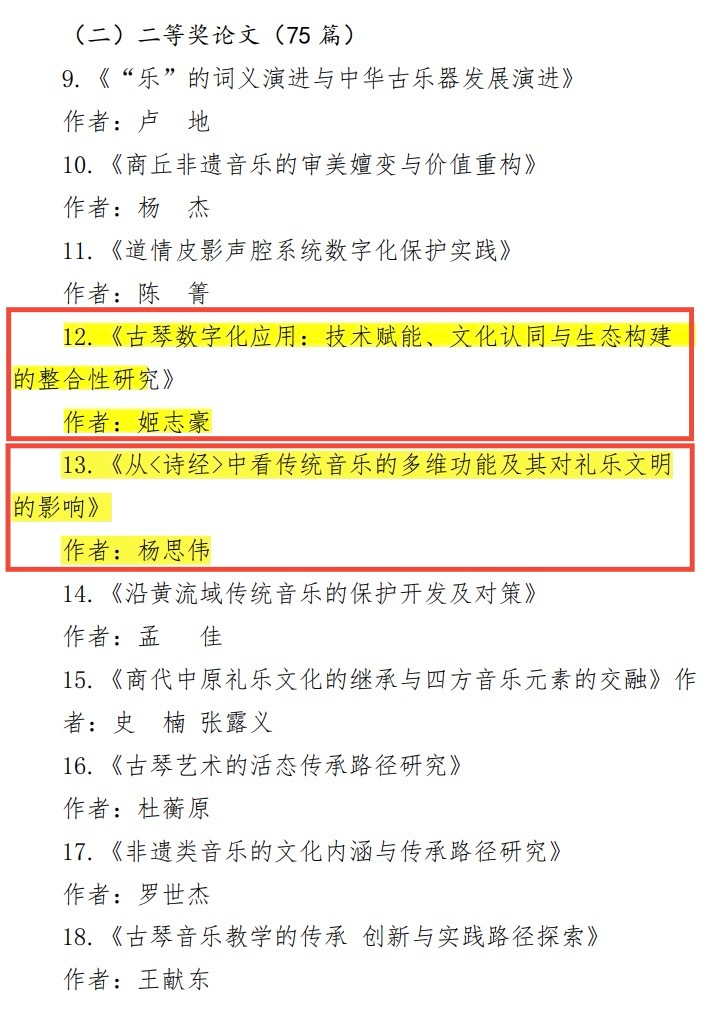 本次活动评选分为传统音乐作品与论文作品两大类别。