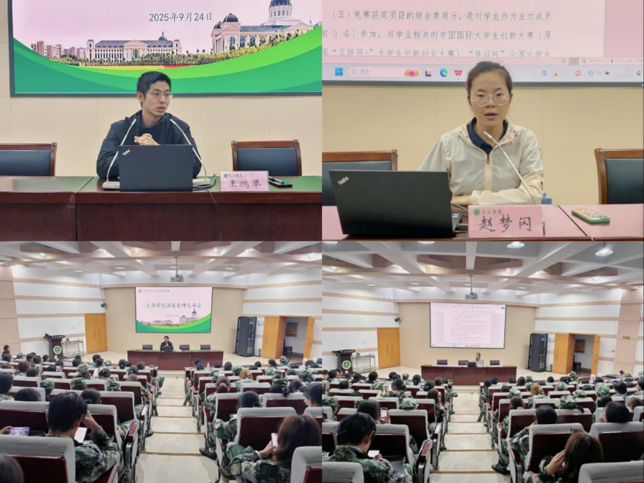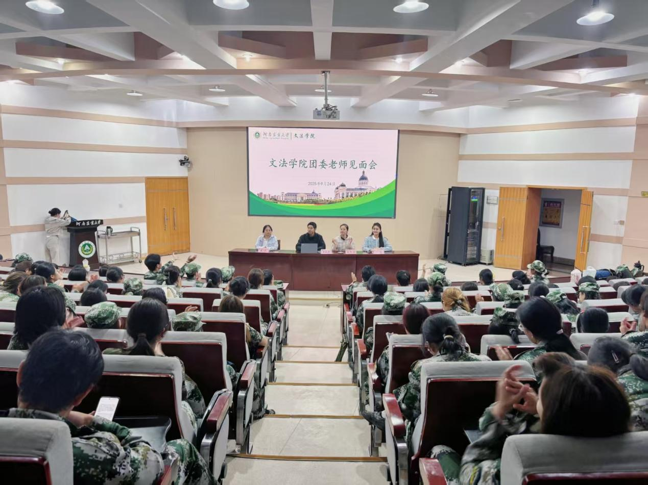 于文化路校区300人报告厅召开新生团委老师见面会,院团委书记王鹏举、团委副书记赵梦闪、辅导员盛戈、孙越出席,2025级全体新生参会。此次会议由赵梦闪主持。