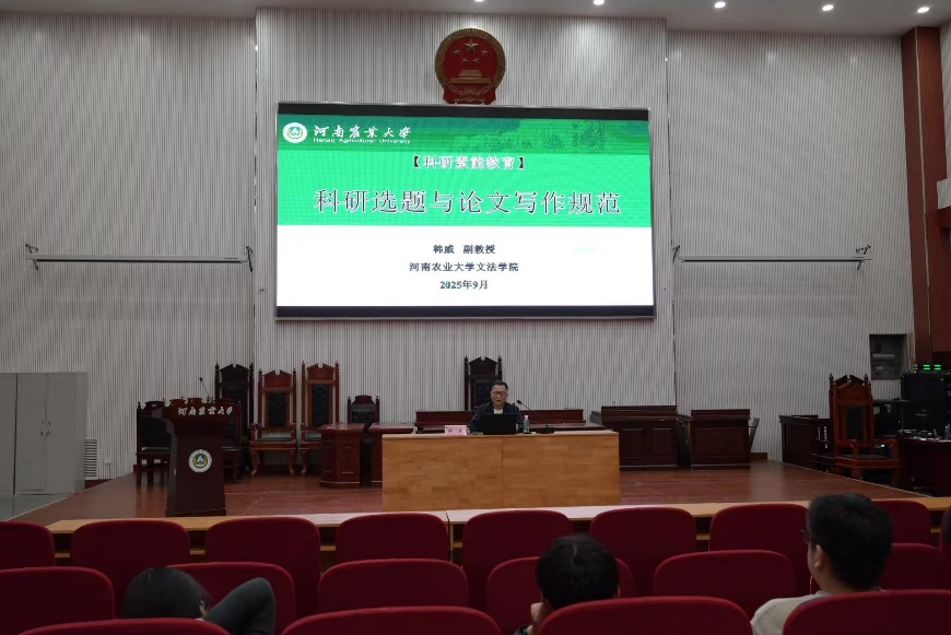 在龙子湖校区繁塔楼模拟法庭,为2025级研究生新生开展科研素能教育讲座。本次讲座由黄色网站