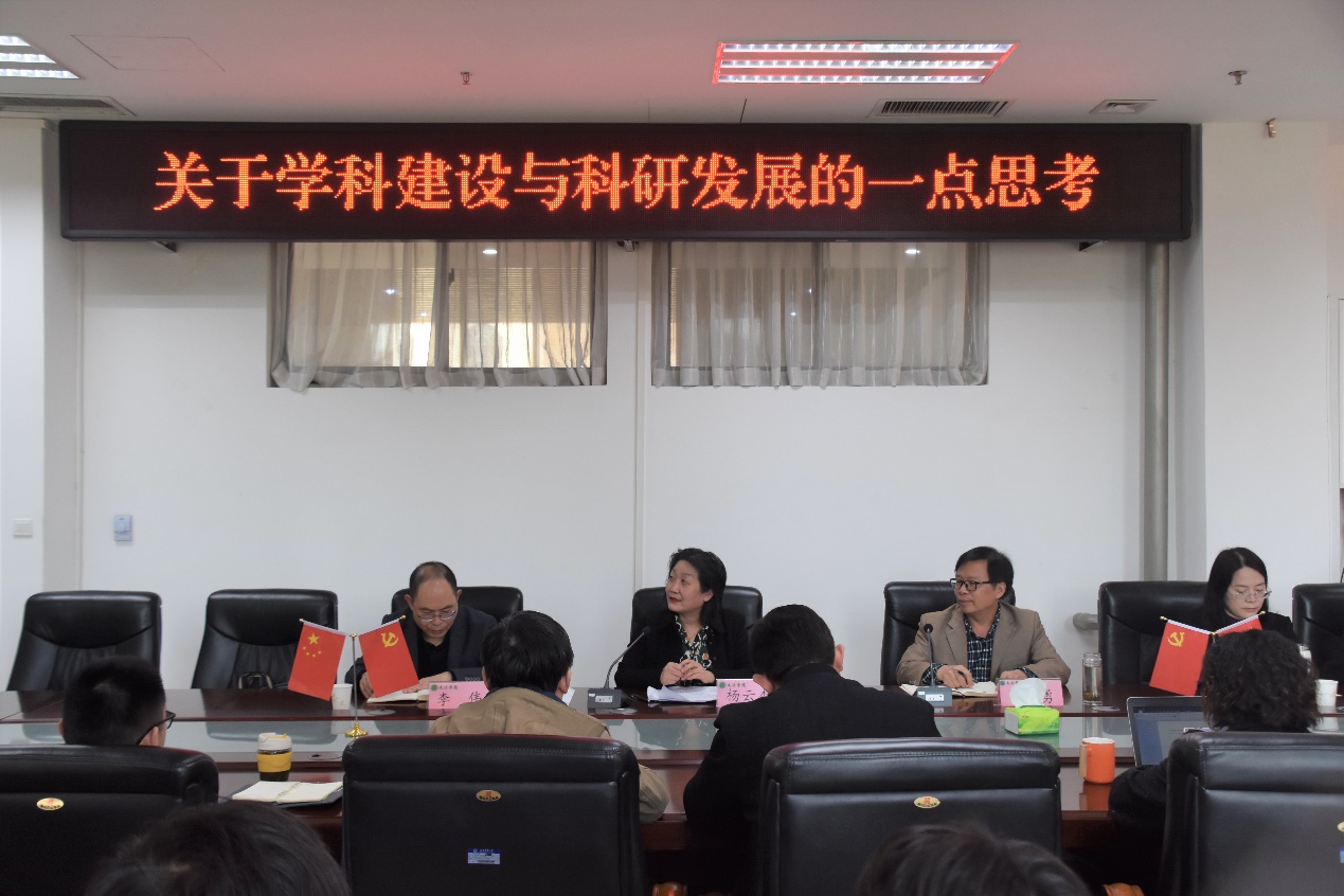 教师作主题为“关于学科建设与科研发展的一点思考”的学术报告。院长王晓勇和部分教师参加了报告,报告会由副院长李伟主持。