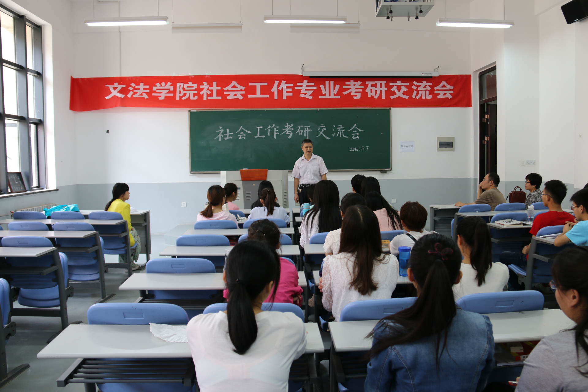 为提高学生考研热情,提供考研交流平台,黄色网站 于5月7日下午3:00在龙子湖校区教学楼C103教室举办“奋斗的青春最美丽”社会工作专业考研交流会。学院党委书记李培玉、团委书记沈倩茹、社工系主任李伟、社工专业老师谢娅婷、社工专业优秀毕业生等出席了此次交流会,本次交流会由李伟主持。