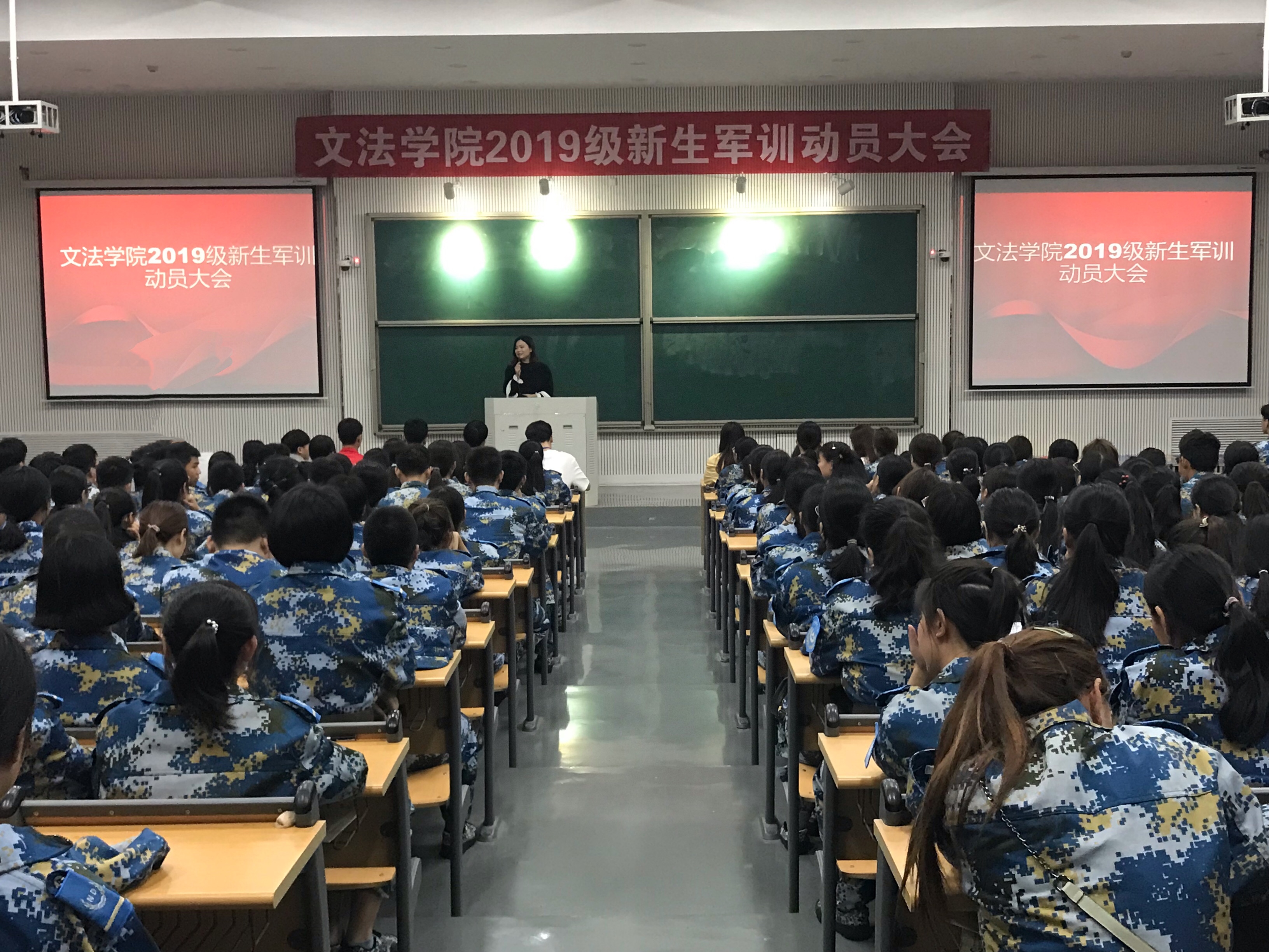 的学生工作,对2019级新生的到来表示欢迎。接着,她强调了军训的重要性,她在发言中讲到:军训作为开学重要的一课,是学校全面贯彻党和国家教育方针、落实国防教育法、推进素质教育的重要举措。军训不仅能锻炼同学们的体能,更能在训练的过程中增强同学们的国防观念和团队意识,希望参训同学能以军人的标准严格要求自己,刻苦训练,勇于磨砺。最后,她要求所有参训同学要快速转变角色,积极投身军事训练,在军训期间严明纪律,培养顽强的军事作风,科学施训,圆满完成本次军训任务。