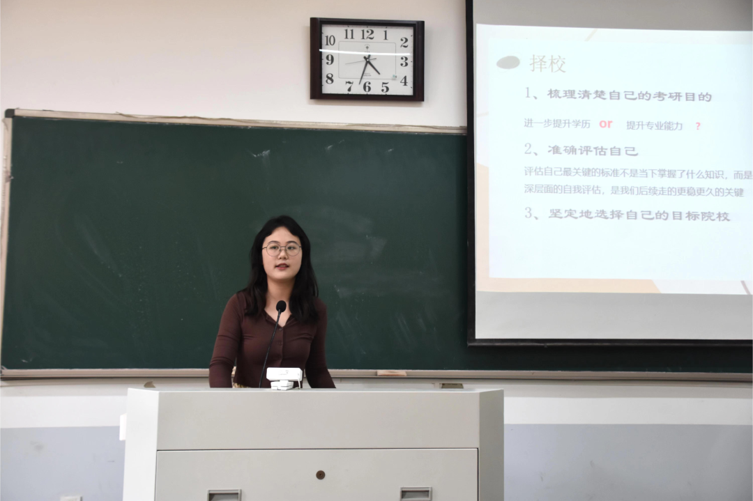 师双辰强调应当尽早确定目标院校,综合考虑各种因素,通过评估自己的学习能力来确定院校,并强调要重视英语,提高英语水平。接着,她从公共课和专业课两个方面详细介绍了备考的技巧,并分享了正确调节心态的方法,希望能够给予考研学生一定的帮助。