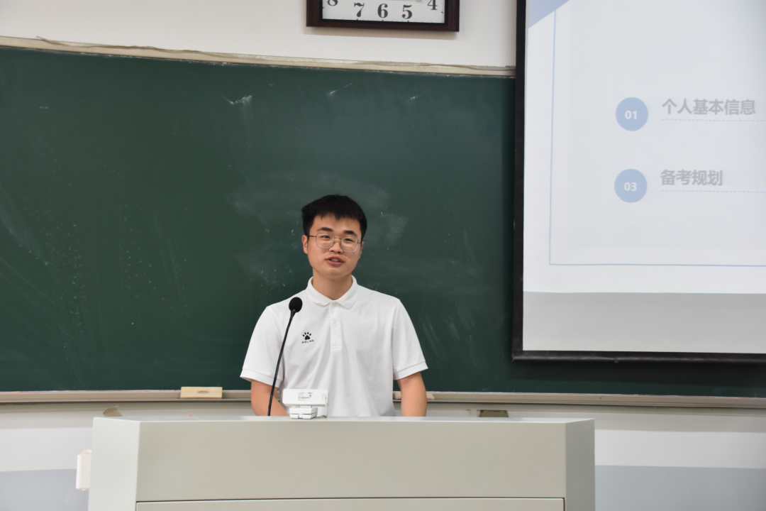 宋文龙从个人基本信息、择校原因、备考规划三方面进行了经验分享。他重点介绍了备考前期、中期、后期三个不同阶段的学习方法,强调指出针对性学习效率更高。而后,他为大家分享了学习资源和心态调节方式。